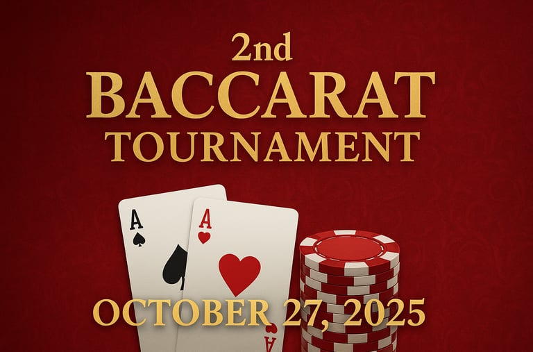 The 2nd Baccarat Tournament features a fair, transparent elimination format designed to keep the competition fierce yet balanced. Players will face off in multiple rounds of increasing intensity, with live leaderboards and real-time updates showing who’s dominating the tables. From first draw to final showdown, the event will be a test of focus, precision, and strategy.